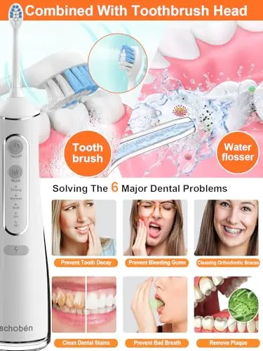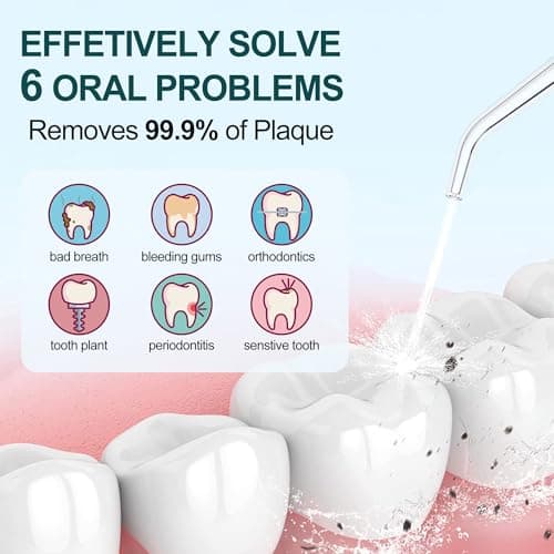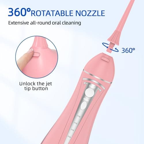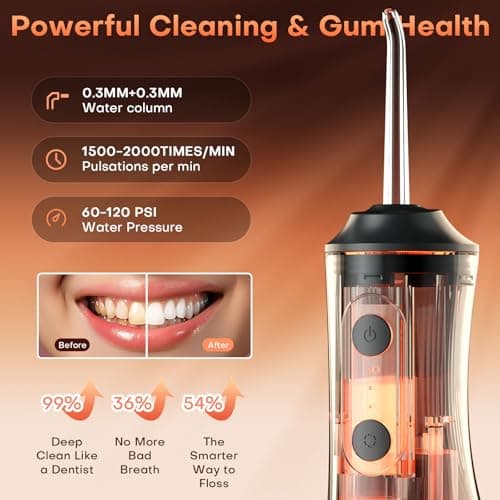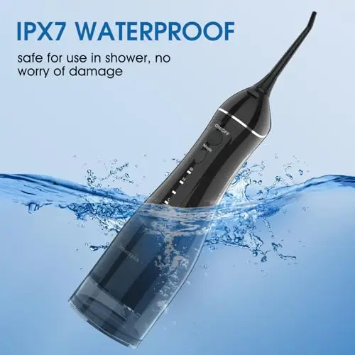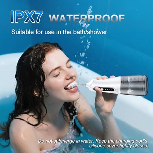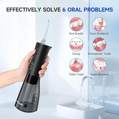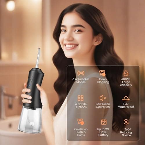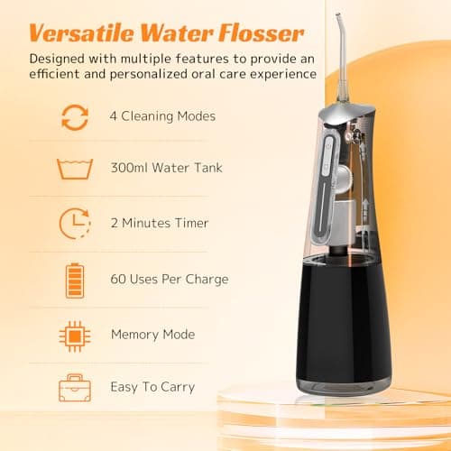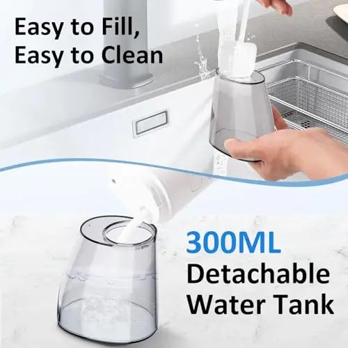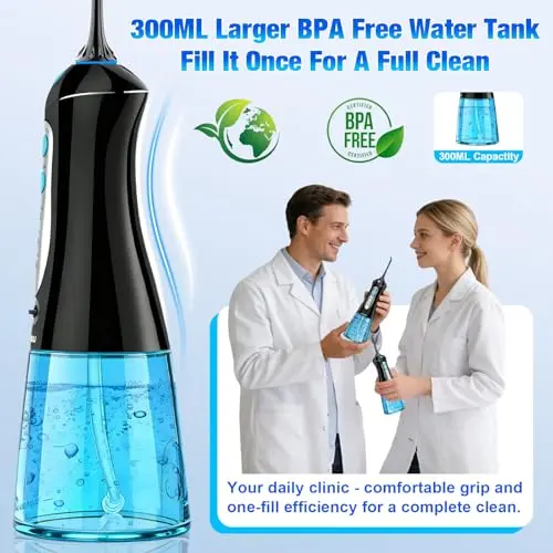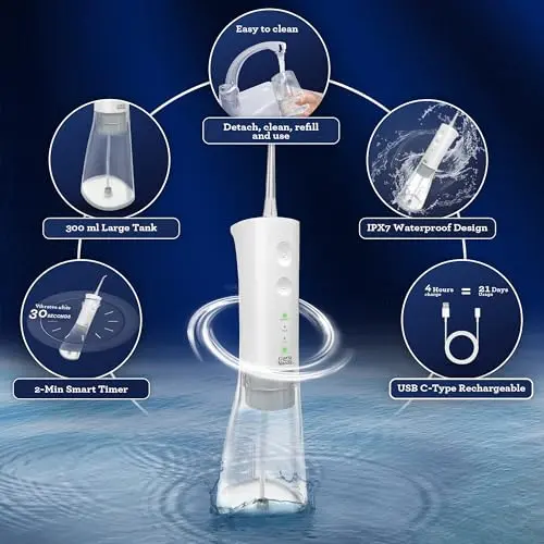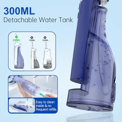 Water Dental Flosser for Teeth – 300ML Cordless Oral Irrigator with 6 Replaceable Jet Tips, 3 Modes, Portable Rechargeable Electric Flosser for Braces & Sensitive Gums, IPX7 Waterproof for Home&Travel