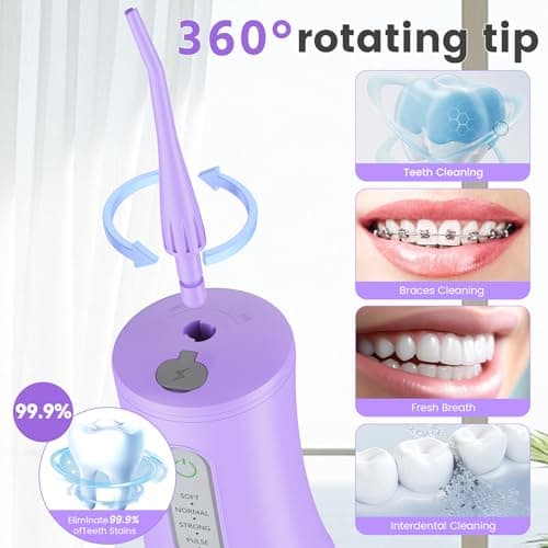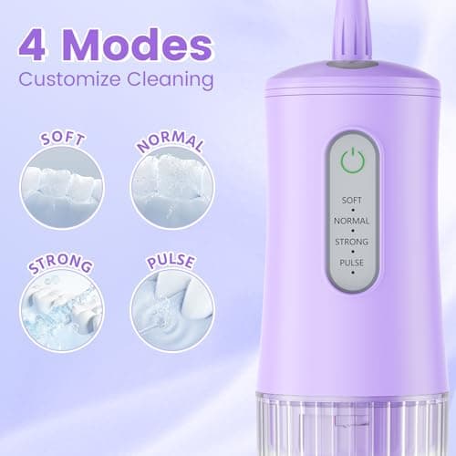 Cordless Water Flosser for Teeth Cleaning Pick - Electric Dental Irrigator with 4 Cleaning Modes & 8 Jet Tips, IPX7 Waterproof, Portable Rechargeable Design for Home & Travel Use,Purple