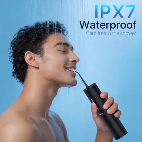 Water Flossers for Teeth, Electric Floss for Adults, Water Dental Picks for Teeth Cleaning and Flossing, Portable Flossers for Travel Size, Travel Bag and 4 Tips, IPX7 Waterproof - Black