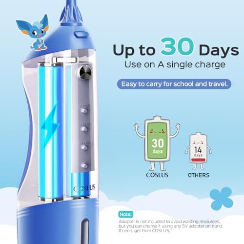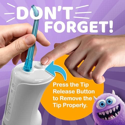 GuruNanda Kids Water Dental Flosser - 4 Flossing Modes, 4 Nozzles, 2-Min Smart Timer, Ages 6+, Monster Frens Theme, Portable Oral Care for Kids