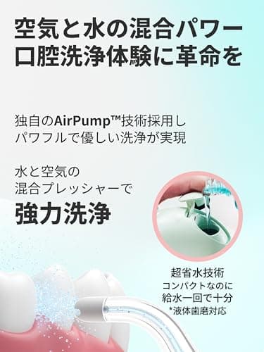 Oclean Airpump A10 Portable Cordless Water Flosser for Teeth, Gums, Braces. Dental Care with 3 Flossing Modes and 2 Tips, Rechargeable, and IPX7 Waterproof. (Green)