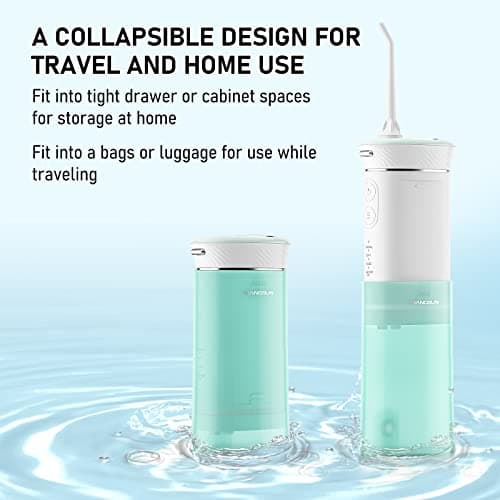 Water Flosser [ Mini Cordless Portable ] Oral Irrigator Water Teeth Cleaner Pick, Telescopic Water Tank, 3 Modes & IPX7 Waterproof, Home & Travel Water Floss for Teeth, Braces Bridges Care (White)