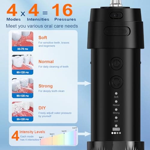 Generic Portable Flossers, Travel Size Mini, 4 Modes IPX7 Waterproof Rating Flossers for Teeth Braces and Bridges