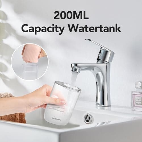Operan Water Flossers for Teeth Cleaning Upgraded 200ml Cordless Water Dental Flossers Portable Rechargeable Oral Irrigator with 4 Modes 4 Jet Tips IPX7 Waterproof Water Floss for Home Travel (Pink)