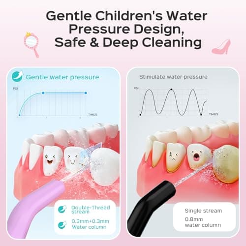 Water Flosser Powerful Cordless Dental Irrigator for Kid Braces Travel Shower to Help Prevent Infections and Bad Breath Pick Floss IPX7 200ML (Pink)