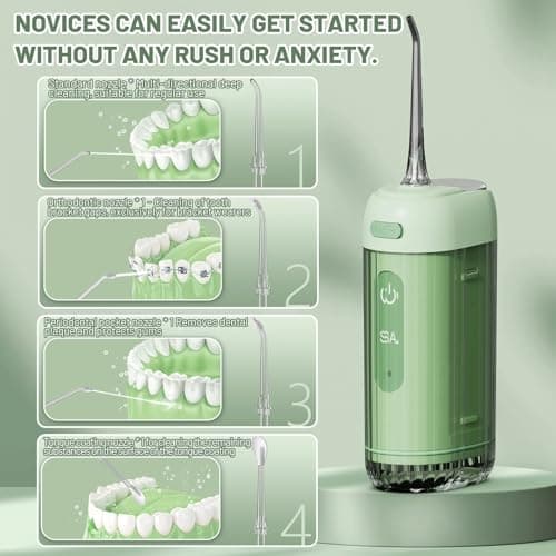 Water Flossers for Teeth, Electric Floss for Adults & Kids, Water Dental Picks, Cleaning and Flossing, Portable Flossers for Travel Size, Gums, Dental Care with Travel Bag, Waterproof - Green/Pink