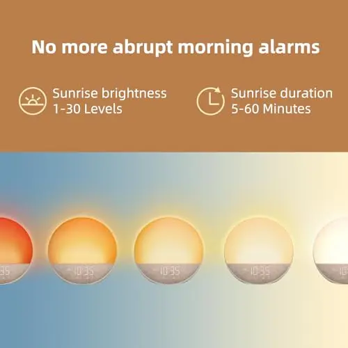 Sunrise Alarm Clock White Noise Machine: Natural Wake Up Light - Dimmable Clock with Bluetooth Speaker for Bedroom - 25 Sleep Sounds for Baby Adults Kids Putty