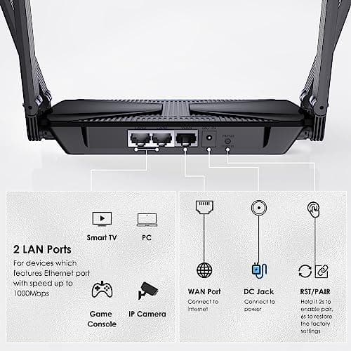 LNN Wi-Fi 6 Router, 3000Mbps Dual Band Wireless Gigabit Routers for Gaming, 20+ Devices Support with OFDMA, 2000 Sq.Ft Coverage, FCC Certified