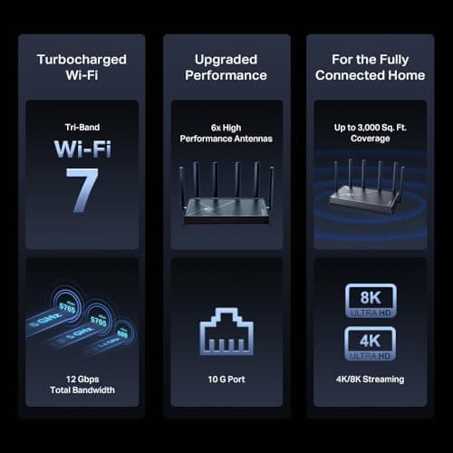 TP-Link Tri-Band BE9300 WiFi 7 Router (Archer BE550) – 6-Stream, Full 2.5G Ports, 6 Internal Antennas, Up to 2,000 sq. ft., EasyMesh Expansion, VPN