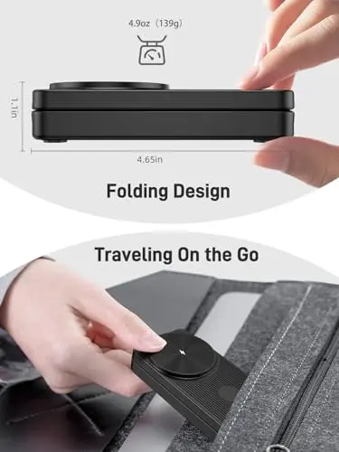 UGREEN MagFlow Qi2 Magnetic Foldable Charging Station, 2-in-1 Fast Wireless Charger Compatible with iPhone 17/17 Air/17 Pro/17 Pro Max 16 15 14 13 12, Airpods3 2 Pro (No AC Adapter), Dark Grey