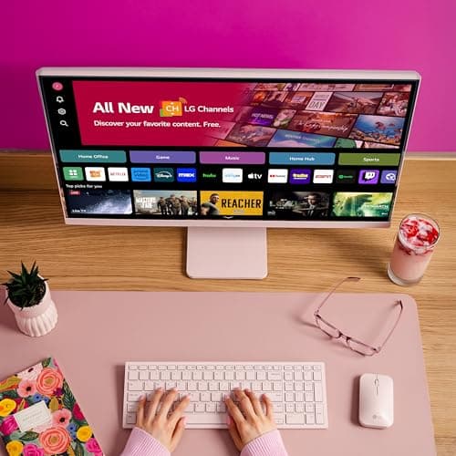 LG 27SR5BF-P 27-inch FHD (1920x1080) Smart Monitor with Streaming TV, webOS, Wireless Keyboard, Mouse, HDR10, IPS Display, webOS, Speaker, ThinQ App, Remote Control, Pink