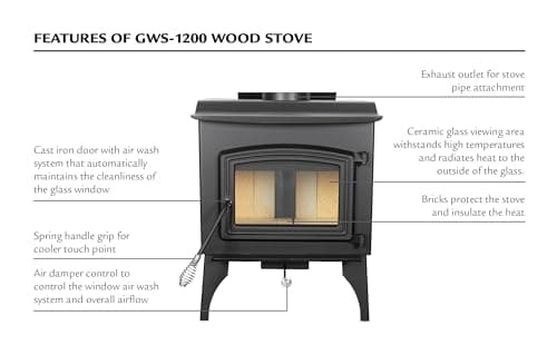 US Stove Company Cast Iron Wood Stove with Cool Touch Safety Handle, Heats up to 54,000 BTUs