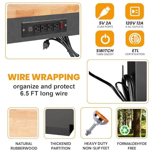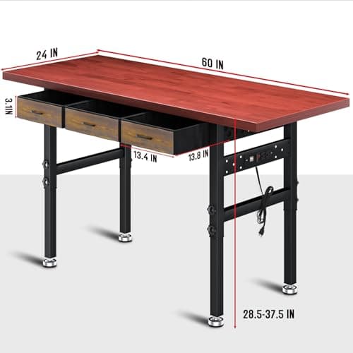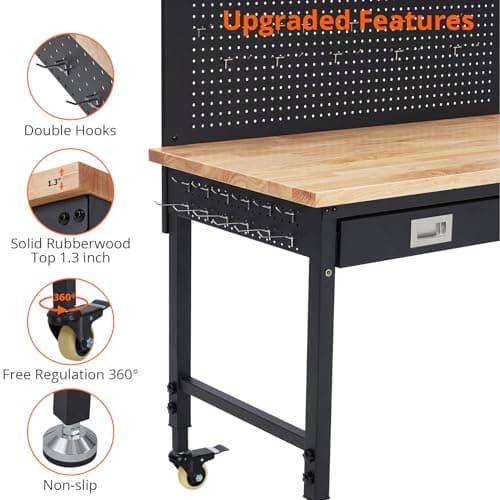 60" Rubber Wood Workbench, Heavy Duty Work Bench with Drawer & Shelf, Work Bench Table for Garage, Workshop, Home Storage, Woodworking Bench, 330 lbs Weight Capacity (60")