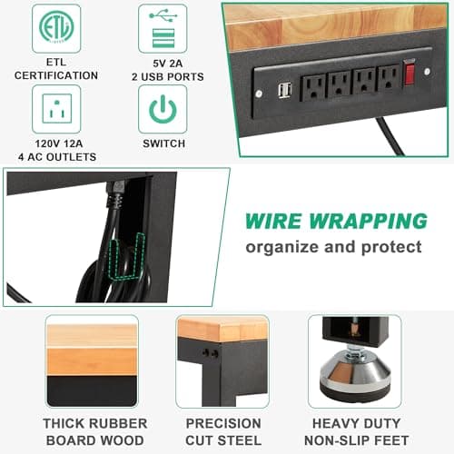 Betterhood 48" Heavy-Duty Adjustable Workbench for Garage, Rubber Wood Shop Table W/Metal Wheels, Hardwood Workstation Weight Capacity Over 2000 Lbs with Wheels