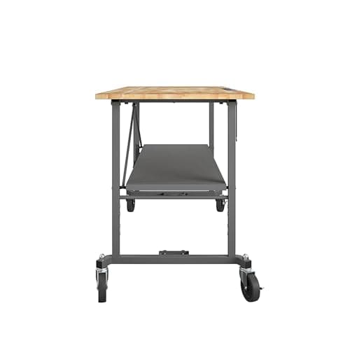COSCO SmartFold Butcher Block Portable Workbench/Folding Utility Table (Gray Steel Frame)