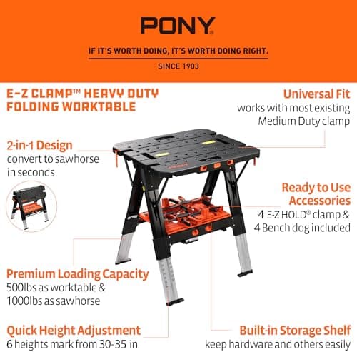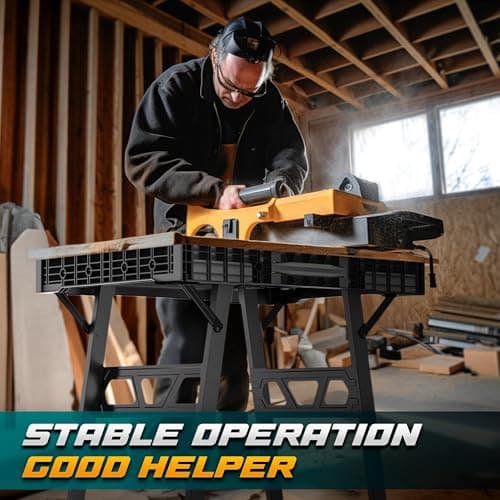 Worx Pegasus 2-in-1 Folding Work Table & Sawhorse, Easy Setup Portable Workbench, 31" W x 25" D x 32" H Lightweight Worktable with Heavy-Duty Load Capacity, WX051 - Includes 2 Clamps & 4 Clamp Dogs