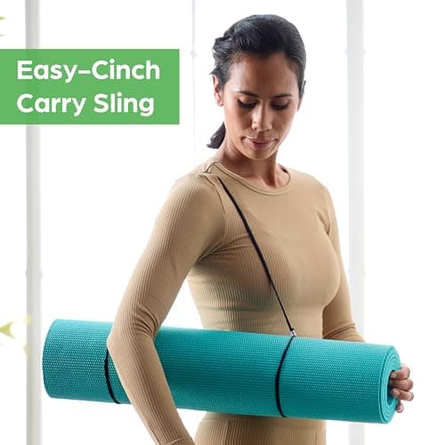Amazon Basics 1-Inch Extra Thick Workout Exercise Yoga Mat with Carrying Strap, 74" x 24", Black