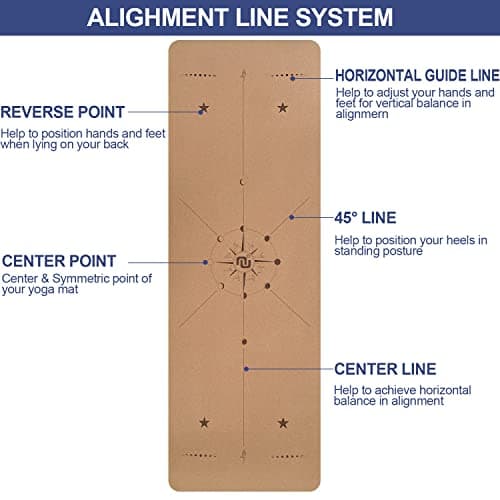 Heathyoga Eco Friendly Non Slip Yoga Mat, Body Alignment System, SGS Certified TPE Material - Textured Non Slip Surface and Optimal Cushioning,72"x 26" Thickness 1/4"